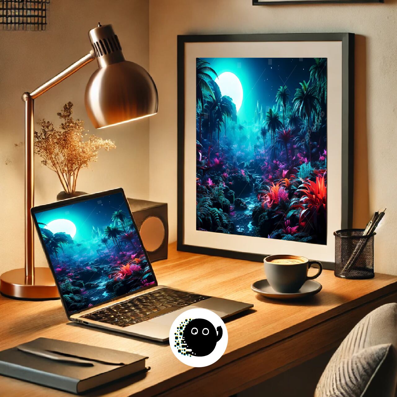 Under the moonlight, a jungle blooms in surreal colors. Neon-like plants guide you into a dreamscape. Welcome to PoPoHiro’s enchanted nocturnal realm.