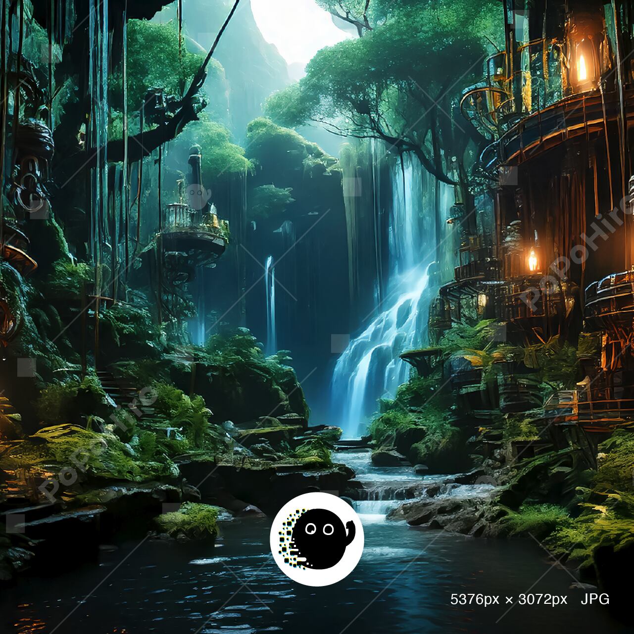 A mystical forest where silence and light intertwine. Green and blue hues illuminate the trees like a portal to another realm. Enter the PoPoHiro dimension.
